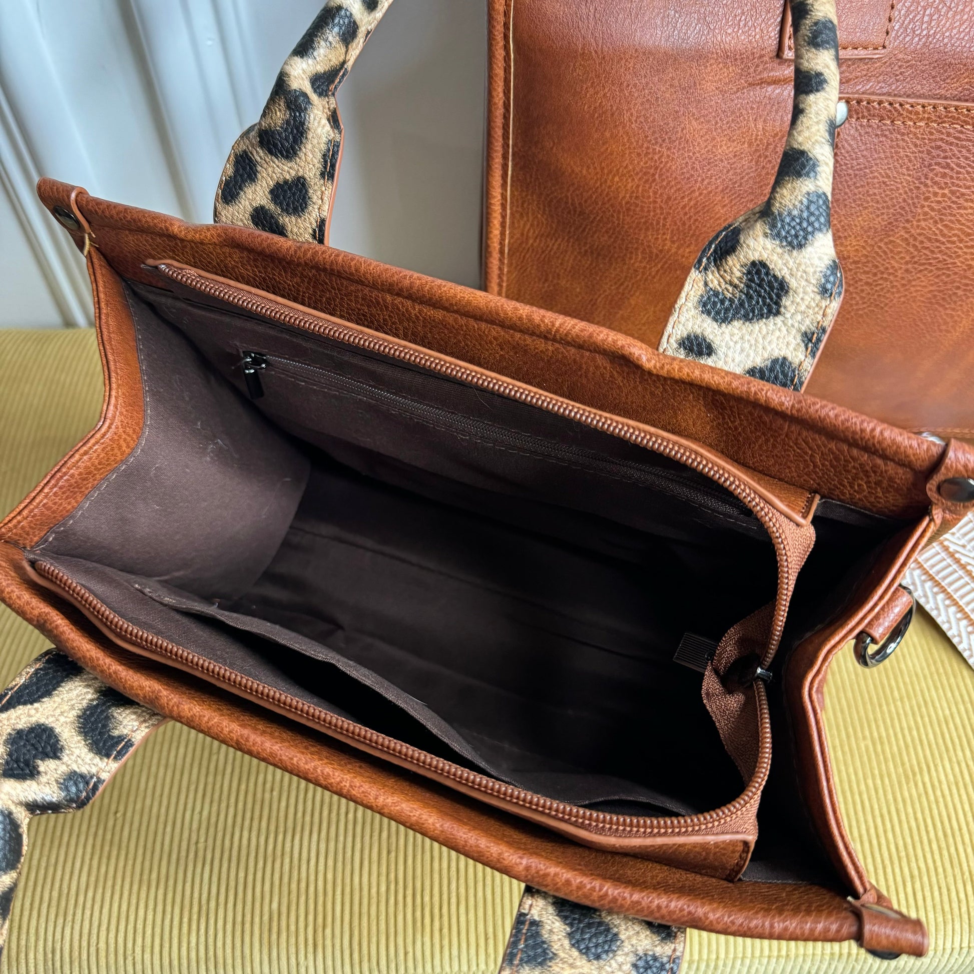 - Back zipper pocket: 6” deep, 8.5” tall.