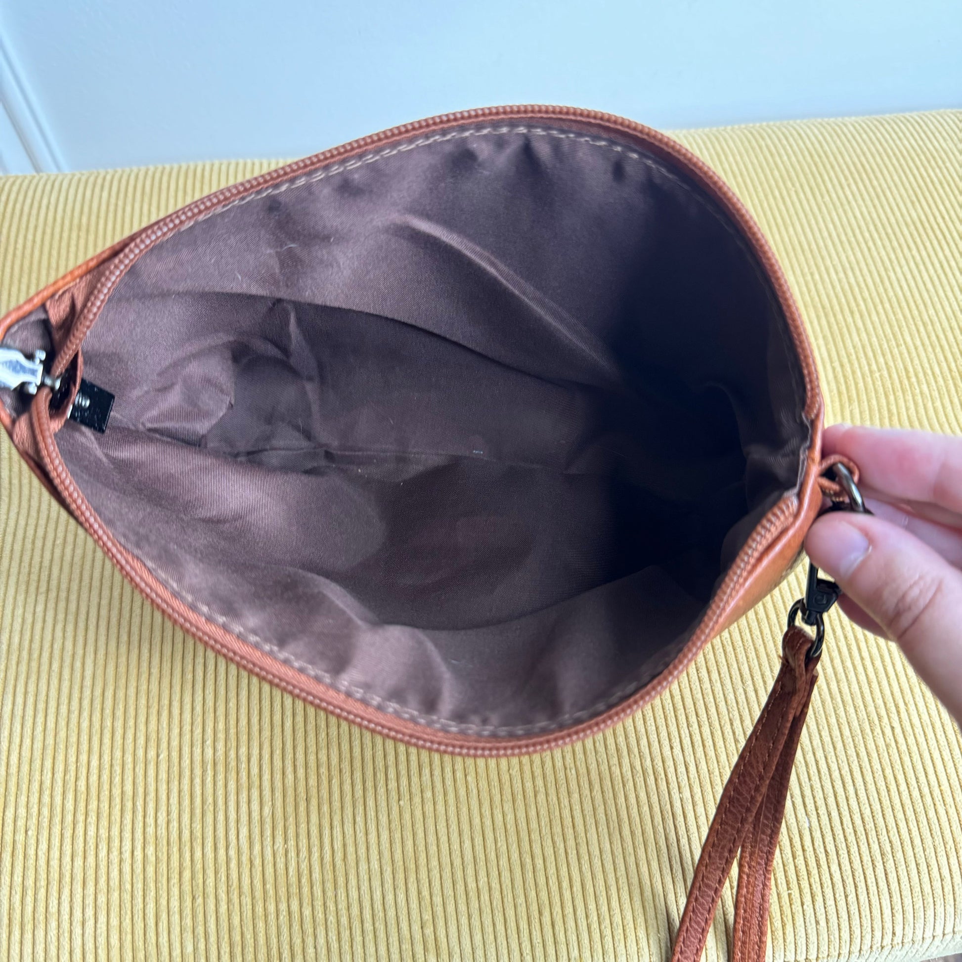 - Back zipper pocket: 4” deep, 6” tall.